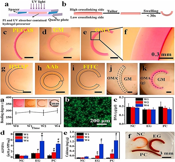 本文系統(tǒng)綜述了①明膠改性策略(甲基丙烯酸化 GelMA 等);②DIW墨水直寫3D打印/光基兩大生物打印工藝對(duì)明膠基墨水的要求;③針對(duì)軟骨(CTE)與骨(BTE)兩大場景的復(fù)合墨水配方;④4D 打印賦予支架動(dòng)態(tài)形態(tài)變化的新進(jìn)展;⑤臨床轉(zhuǎn)化瓶頸與未來方向。