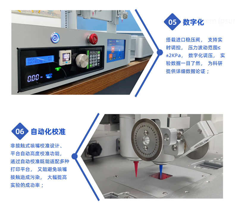 AutoBio系列設(shè)備工作空間巨大(最大可達(dá)300*200*100mm),能滿足食品研發(fā)對(duì)大尺寸、批量化打印的需求;最小能適配至0.1mm直徑噴嘴、±0.2kPa的壓力精度、±3%的質(zhì)量誤差精度、±10μm的機(jī)械定位精度,滿足高精度的成型需求。壓力值、固化溫度、平臺(tái)溫度、模型三維數(shù)據(jù)、噴嘴直徑、料桶直徑、材料粘度值等,能夠?yàn)槭称房蒲腥藛T提供大量精確的數(shù)據(jù)分析及對(duì)比。獲取食品科研過(guò)程中各種數(shù)據(jù)支持。