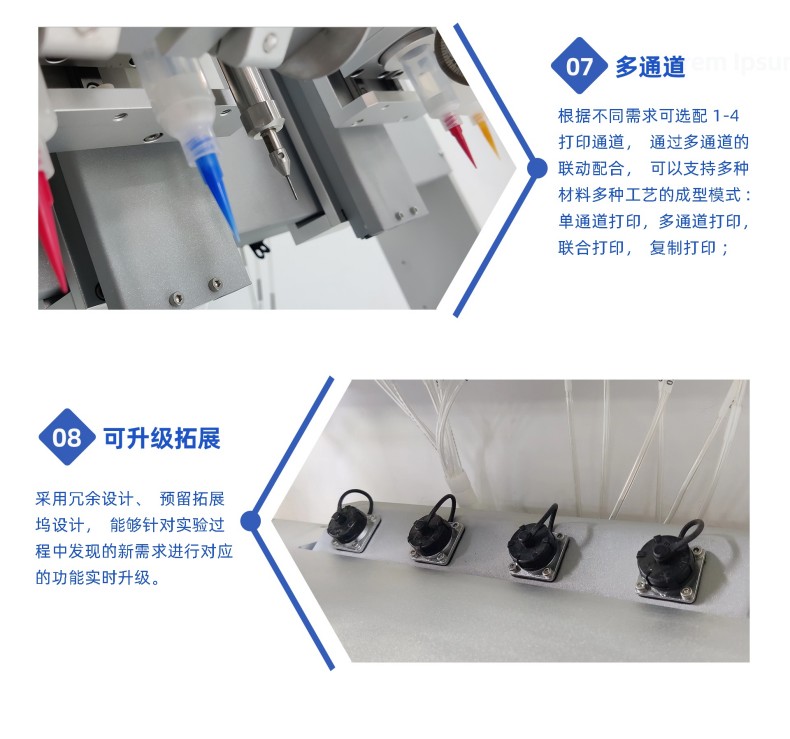 通過(guò)我司AutoBio系列多通道墨水直寫3D打印機(jī),實(shí)現(xiàn)分子篩材料的多孔結(jié)構(gòu)精確打印。多通道多材料設(shè)計(jì)能夠更簡(jiǎn)單高效的縮短各種自調(diào)配材料的測(cè)試周期。為催化反應(yīng)載體、氣體分離膜等分子篩應(yīng)用領(lǐng)域提供高精度、可定制化的科研支持。