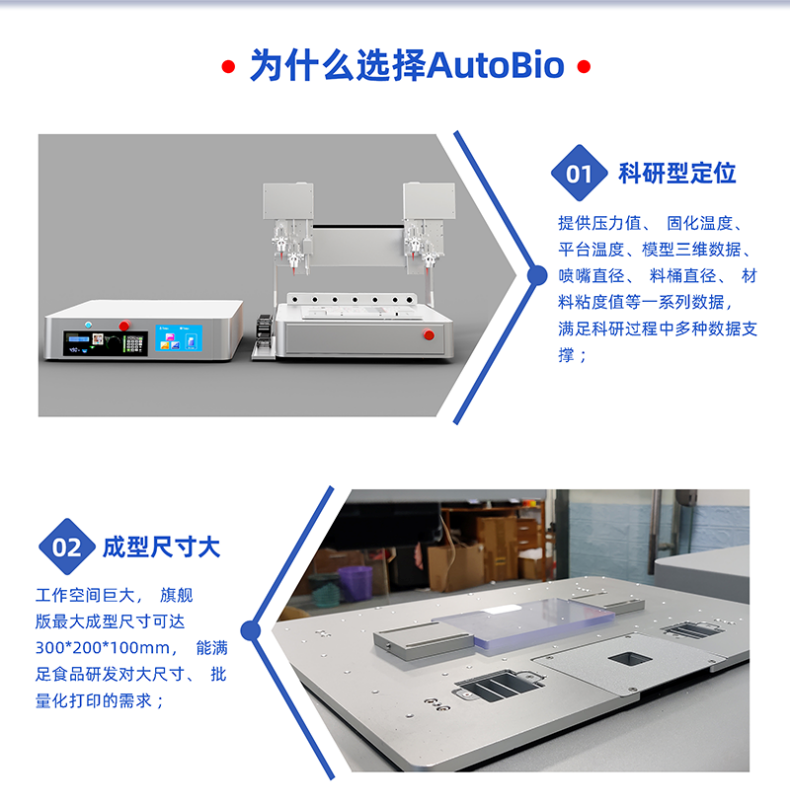 利用AutoBio系列食品3D打印機(jī)可視化實(shí)驗(yàn)數(shù)據(jù)特點(diǎn),結(jié)合常溫及低溫模塊,實(shí)現(xiàn)食品科研材料的精確成型與活性保護(hù),分析食品材料消化和質(zhì)構(gòu)行為釋放曲線等不同數(shù)據(jù),為個(gè)性化營(yíng)養(yǎng)食品、創(chuàng)新質(zhì)構(gòu)設(shè)計(jì)及功能性添加劑研發(fā)提供高效解決方案,推動(dòng)食品行業(yè)向數(shù)字化、定制化轉(zhuǎn)型升級(jí)。
