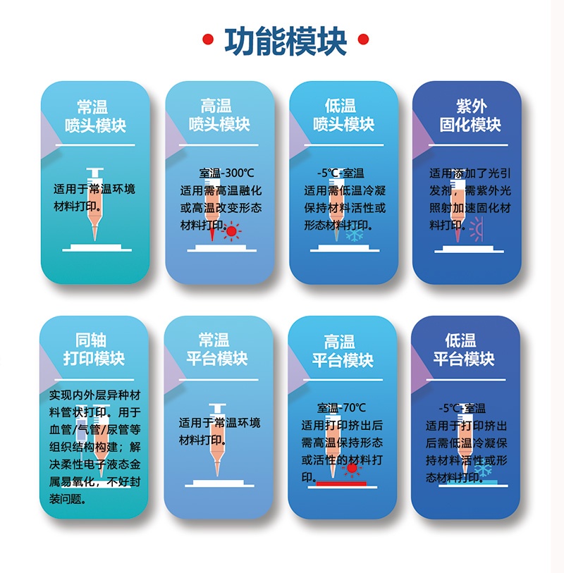 生物3D打印機(jī)、藥物3D打印機(jī)、陶瓷3D打印機(jī)、食品3D打印機(jī)、DIW墨水直寫3D打印機(jī)、水凝膠3D打印機(jī)、細(xì)胞3D打印機(jī)、硅膠3D打印機(jī)、氧化鋁3D打印機(jī)、氧化鋯3D打印機(jī)、羥基磷灰石3D打印機(jī)、柔性電子3D打印機(jī)、藥物篩選3D打印機(jī)、高通量3D打印機(jī)