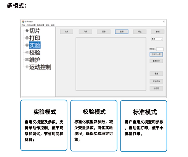 標(biāo)準(zhǔn)模式:用戶自定義模型和參數(shù),自動(dòng)化打印,便于小批量打印。