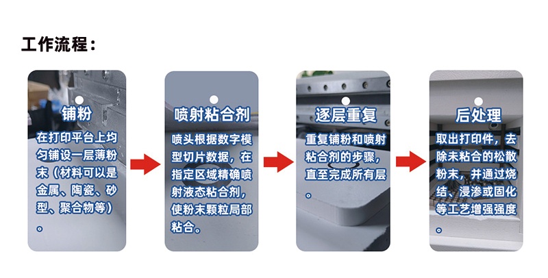 技術(shù)類型:粘結(jié)劑噴射3D打?。˙inder Jetting,BJ)是一種基于粉末材料的增材制造技術(shù),通過(guò)逐層噴射粘合劑將粉末顆粒粘合,最終形成三維物體。